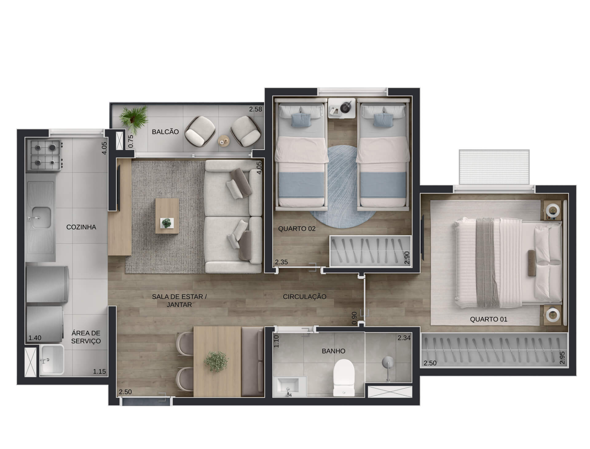Seu apartamento estará próximo a diversas opções de serviços e lazer, como o Buriti Shopping e o Parque Cascavel.