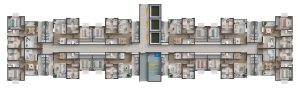 11 (onze) elevadores, sendo 03 (três) elevadores por torre e 02 (dois) elevadores exclusivos para acesso as vagas dos pavimentos garagem